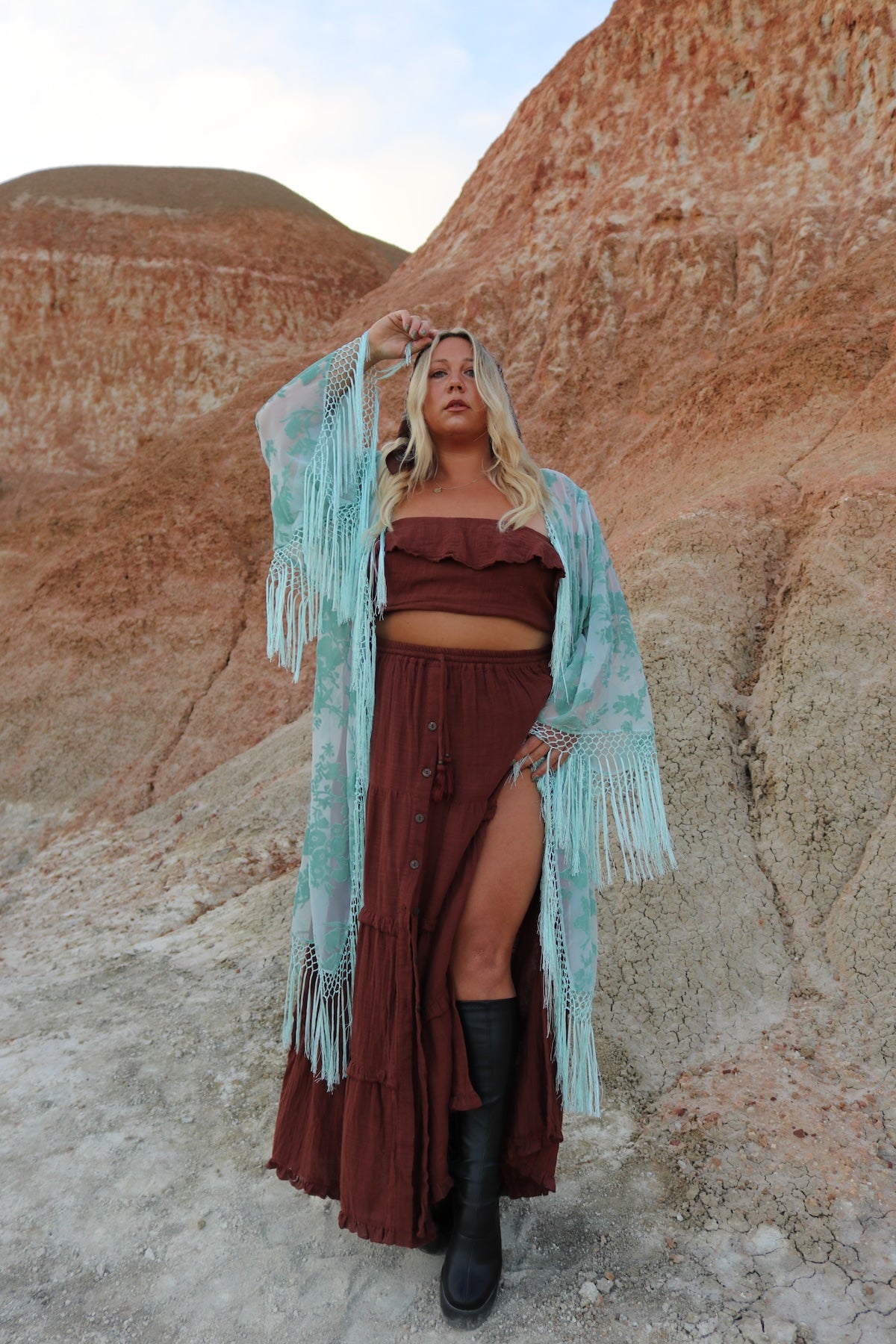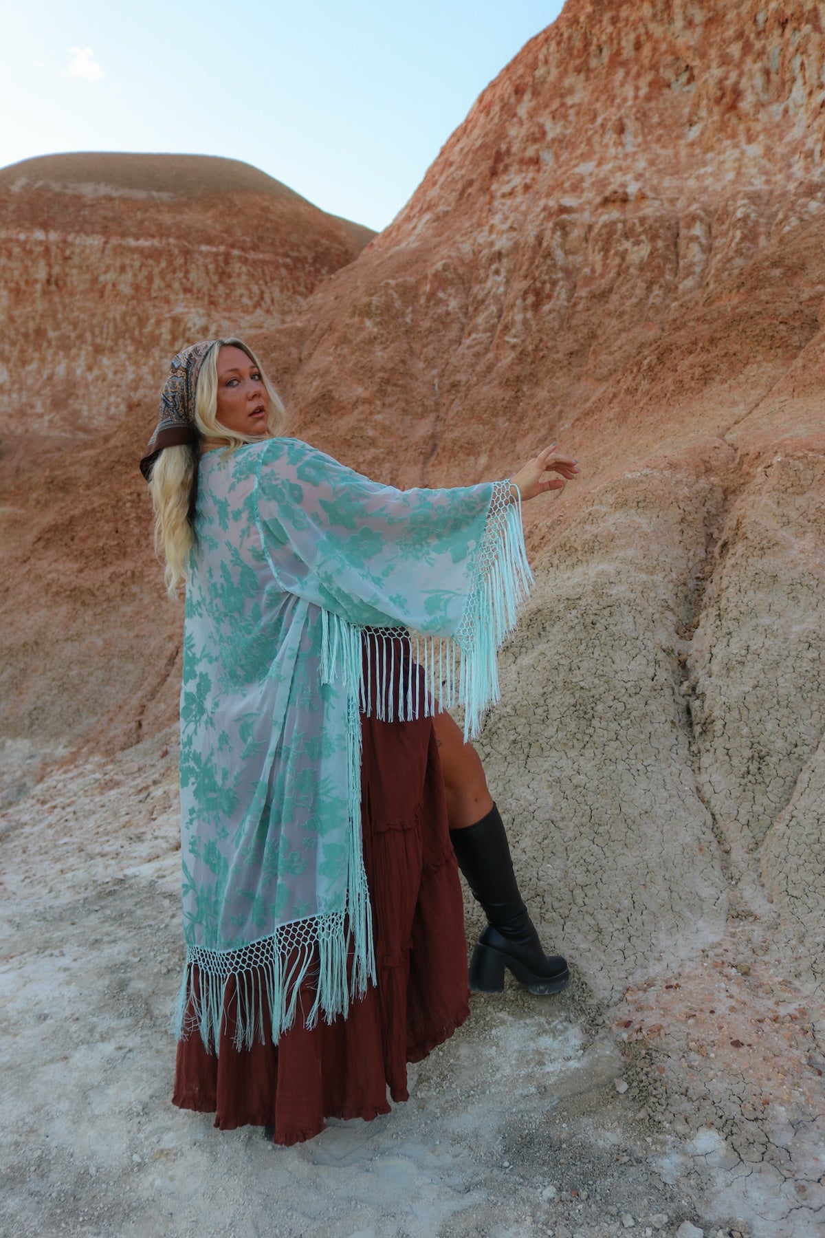 Made to order bohemian velvet silk robes, featuring exquisite hand-knotted fringe. Each piece made with love.